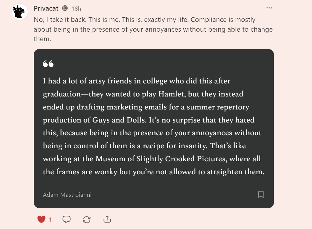 Those who work in compliance-adjacent fields may agree on how funny and sadly relatable this actually is.